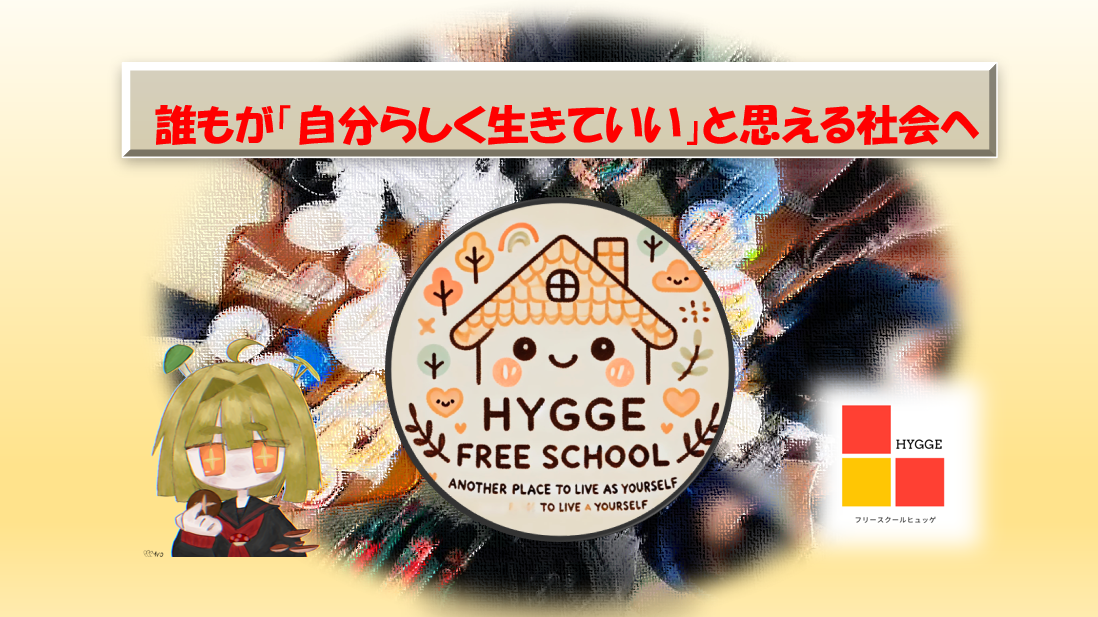 フリースクールヒュッゲは、不登校などで不安や悩みを抱え、生きづらさを感じている人たちのための『"ヒュッゲ"を理念とした自分らしく生きるもう一つの居場所』です。